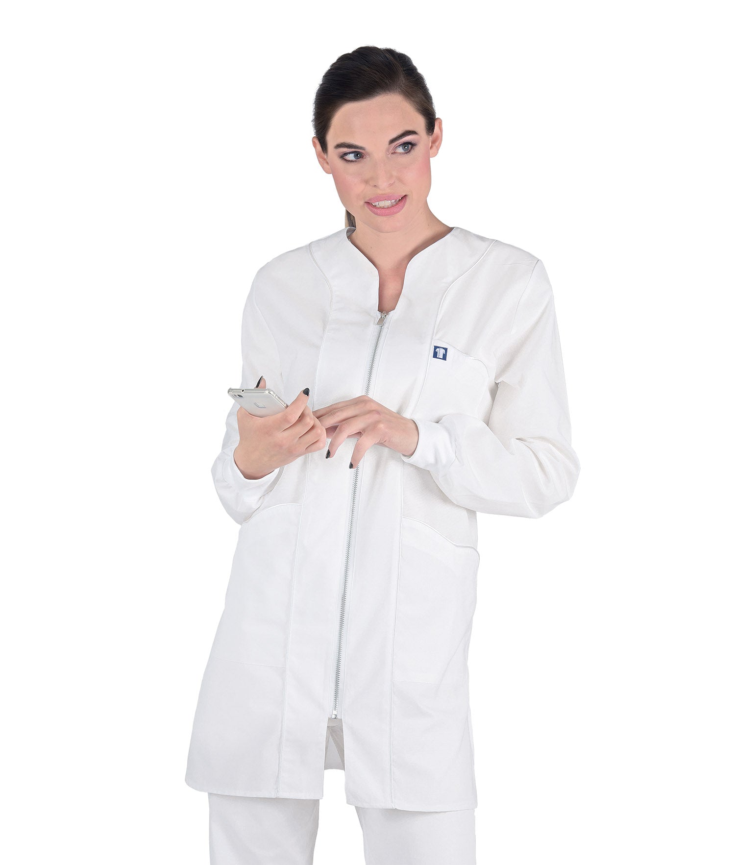 Γυναικεία Ζακέτα - Μπλούζα ,λευκό , φερμουάρ , 3 τσέπες , προστατευτικό λάστιχο - rip της Medical Bodyguard code: 305/1